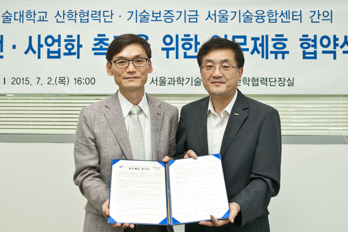 Áö³ 7¿ù 2ÀÏ(¸ñ), ¼¿ï°úÇбâ¼ú´ëÇб³ »êÇÐÇù·Â´Ü(´ÜÀå ±èµ¿È¯)Àº ±â¼úº¸Áõ±â±Ý ¼¿ï±â¼úÀ¶ÇÕ¼¾ÅÍ(¼¾ÅÍÀå ¹è±Ýö, ÀÌÇÏ ±âº¸)¿Í È¿À²ÀûÀÌ°í ½ÇÈ¿ÀûÀÎ ±â¼úÀÌÀüÁß°³ ÃßÁøÀ» À§ÇÑ ¾÷¹«Çù¾àÀ» ü°áÇß´Ù. 100ÁÖ³â±â³ä°ü »êÇÐÇù·Â´ÜÀå½Ç¿¡¼ ¿¸° À̳¯ ü°á½Ä¿¡ ¼¿ï°ú±â´ë¿¡¼ ±èµ¿È¯ »êÇÐÇù·Â´ÜÀå, Â÷Àç»ó ÀüÀÚIT¹Ìµð¾î°øÇаú ±³¼ö, °ûÀ±ÀÏ »êÇבּ¸°úÀå, ±èÇü³â Àü¹®À§¿øÀÌ, ±âº¸Ãø¿¡¼´Â ¹è±Ýö ¼¾ÅÍÀå, ¾ÈÁ¤ÁØ ºÎÁöÁ¡Àå, ¹èÇö¹Ì °úÀåÀÌ Âü¼®Çß´Ù.