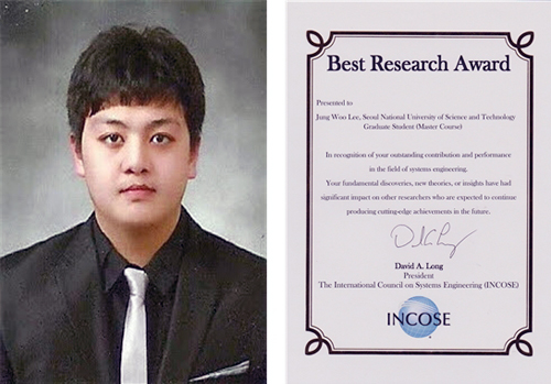 ¼¿ï°úÇбâ¼ú´ëÇб³ öµµÀü¹®´ëÇпø(¿øÀå ±è½Ã°ï)¿¡¼´Â öµµÂ÷·®½Ã½ºÅÛ°øÇаú ¼®»ç°úÁ¤ ÀÌÁ¤¿ì ¾¾°¡ Áö³ 10¿ù 13ÀÏ(È) ´ëÇÑ»ó°øÈ¸ÀǼҿ¡¼ °³ÃÖµÈ APCOSEC-2015(¾Æ½Ã¾Æ-ÅÂÆò¾ç ½Ã½ºÅÛ¿£Áö´Ï¾î¸µ ±¹Á¦Çмú´ëȸ)¿¡¼ '2015 Best Research Award'À» ¼ö»óÇß´Ù°í ¹àÇû´Ù. À̷νá INCOSE(±¹Á¦½Ã½ºÅÛ¿£Áö´Ï¾î¸µÇùȸ) David Long ȸÀåÀÌ ¼ö¿©ÇÏ´Â ÃÖ°í ¿¬±¸ÀÚ »óÀ» ¼ö»óÇÏ¿´´Ù.