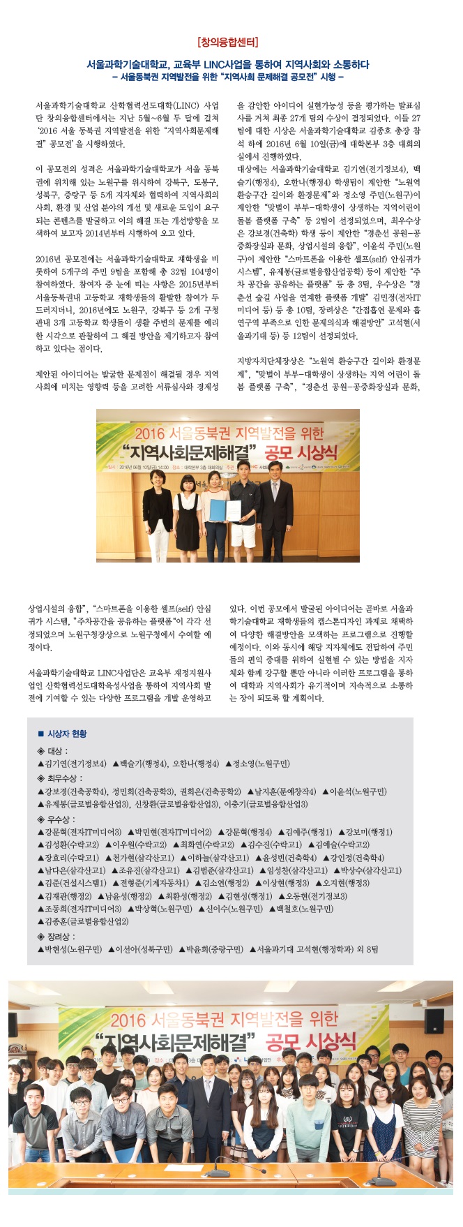 ¼¿ï°úÇбâ¼ú´ëÇб³, ±³À°ºÎ LINC»ç¾÷À» ÅëÇÏ¿© Áö¿ª»çȸ¿Í ¼ÒÅëÇÏ´Ù