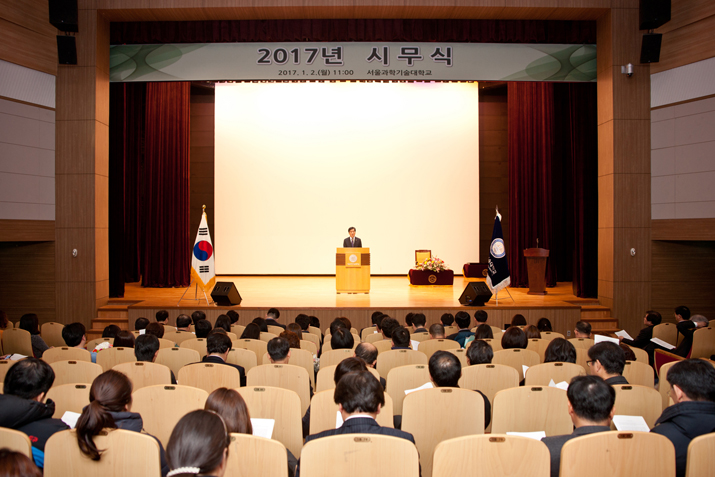 ¼¿ï°úÇбâ¼ú´ëÇб³(ÃÑÀå ±èÁ¾È£, ÀÌÇÏ ¼¿ï°ú±â´ë)´Â 1¿ù 2ÀÏ, ±³³» 100ÁÖ³â±â³ä°ü¿¡¼ ±èÁ¾È£ ÃÑÀåÀ» ºñ·ÔÇÑ ÁÖ¿ä º¸Á÷ÀÚ¿Í ±³Á÷¿ø µî 500¿©¸íÀÌ Âü¼®ÇÑ °¡¿îµ¥ 2017³â ½Ã¹«½ÄÀ» °³ÃÖÇϰí, Á¤À¯³â »õÇØ ÈûÂù µµ¾àÀ» ´ÙÁüÇß´Ù.