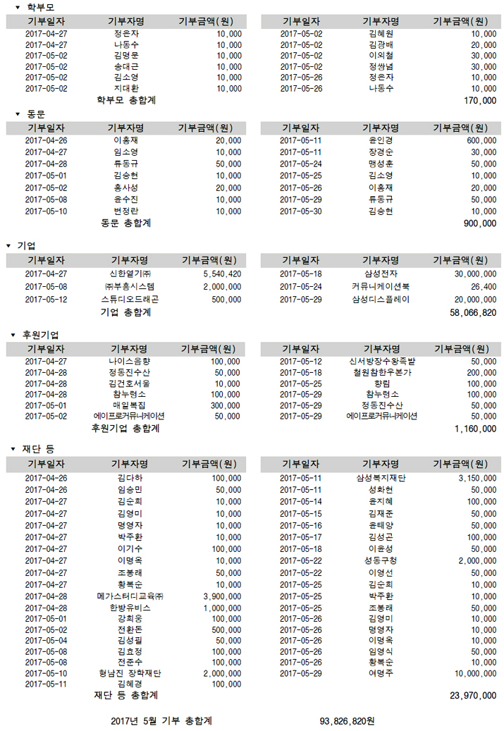 ¹ßÀü±â±Ý Ã⿬¸í´Ü (2017³â 5¿ù)