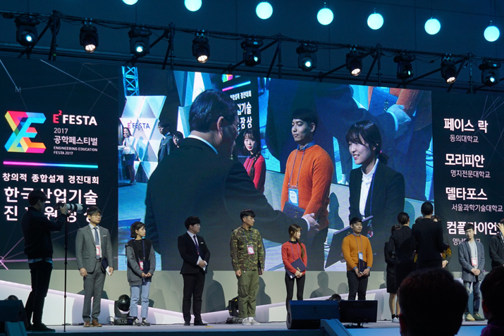 The SeoulTech Center for Engineering Education and Innovation has gained a good reputation for its activities in all areas. In the Creative Design Competition, 'DeltaForce' team consisting of 4 students in mechanical system design engineering won the prize of the Korea Industrial Technology Promotion Agency for its '4-axis delta robot using tilting stage'. In addition, 'M-Life' team, which is a multi-disciplinary team of mechanical system design engineering and electronic IT media engineering, was awarded as 'hand sign pitching machine'