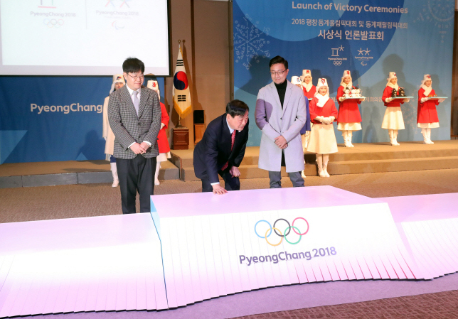 During the day¡¯s event, POCOG also disclosed the costumes to be worn by the awarding staff, award tray, awarded items, and award music to be played during the upcoming Olympic and Paralympic Games, targeting Korean and international media at the International Meeting Room of the center. Awarding ceremonies will be held 103 times during the Olympic Winter Games PyeongChang 2018 and 80 times during the PyeongChang 2018 Paralympic Winter Games.