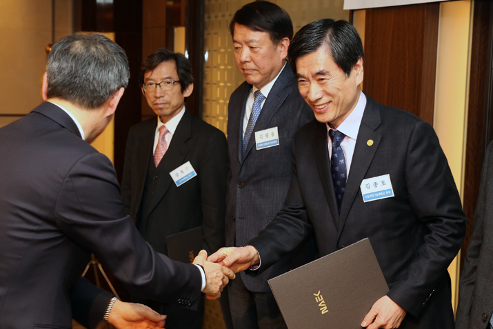 ¡ã President Kim Jong-ho (right) receiving a membership certificate from Kwon Oh-kyong, President of the National Academy Engineering of Korea