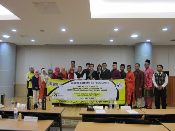 ¸»·¹ÀÌ½Ã¾Æ °úÇдëÇÐ(USM) ´ëÇ¥´ÜÀÌ 3¿ù 22ÀÏ ¿ì¸®´ëÇÐÀ» ¹æ¹®Çß´Ù. Dr. Wan Ahamd Jaafar Wan Yahaya (±³¼ö)¸¦ ÀμÖÀÚ·Î 19¸íÀÇ ÇкÎ, ´ëÇпø»ý µîÀ¸·Î ±¸¼ºµÈ USM ´ëÇ¥´ÜÀº ±³·ù´ëÇÐÀ¸·Î¼ ´Ü¼ø ¹æ¹®ÀÌ ¾Æ´Ñ ¹®È ±³·ùÂ÷ ¿ì¸®´ëÇÐÀ» ¹æ¹®ÇÏ¿´´Ù. ¾îÇпø ÄÁÆÛ·±½ºÈ¦¿¡¼ ¿¸° À̹ø Çà»ç¿¡ ¾ç ´ëÇÐ °£ÀÇ ¹®È ±³·ùÀÇ ÀåÀÌ ¸¶·ÃµÇ¾î, ¿ì¸®´ëÇÐÀº Áß¾Óµ¿¾Æ¸® ÇØ¹æÇ³¹°ÆÐÀÇ °ø¿¬À», USMÀº ¸»·¹ÀÌ½Ã¾Æ ÀüÅëÀÇ»ó¼î¿Í ÀüÅë´í½º¸¦ ¼±º¸¿´´Ù. ȯ¿µ½ÄÀ» ¸¶Ä£ µÚ USM ¹æ¹®´ÜÀº Áß¾Óµµ¼°ü ¹× º°°üµµ¼°ü°ú Å×Å©³ëÆÄÅ©¸¦ µÑ·¯º¸´Â ½Ã°£À» °¡Á³´Ù.