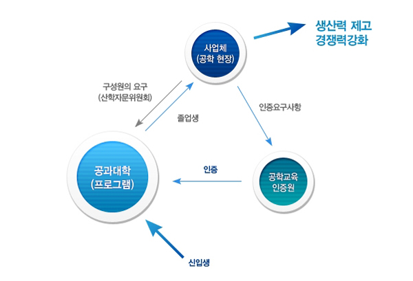 °øÇб³À°ÀÎÁõÁ¦µµ´Â ±¹Á¦ÀûÀ¸·Î ÀÎÁ¤µÈ Çѱ¹°øÇб³À°ÀÎÁõ¿ø(ABEEK)ÀÇ Æò°¡¸¦ ÅëÇØ ¿ì¸®´ëÇÐÀÇ ±³À°Ç°ÁúÀ» º¸ÁõÇϰí Çлý, »ê¾÷ü, Áö¿ª»çȸÀÇ ¿ä±¸¸¦ ±³À°¸ñÇ¥¿Í ÇнÀ ¼º°ú¿¡ Áö¼ÓÀûÀ¸·Î ¹Ý¿µÇÔÀ¸·Î½á ¼ö¿äÁöÇâ °øÇб³À°À» ½Ç½ÃÇϴµ¥ ¸ñÀûÀ» µÎ°í ÀÖ´Ù. Áï ÇØ´ç ÇÁ·Î±×·¥(Àü°ø)À» À̼öÇÑ Á¹¾÷»ýÀÌ »çȸ¿¡¼ ÇÊ¿ä·Î ÇÏ´Â °øÇнǹ«¸¦ ÀûÀýÇÏ°Ô ¼öÇàÇÒ Áغñ°¡ µÇ¾î ÀÖÀ½À» º¸ÁõÇØÁÖ´Â Á¦µµ¶ó°í ¸»ÇÒ ¼ö ÀÖ´Ù.