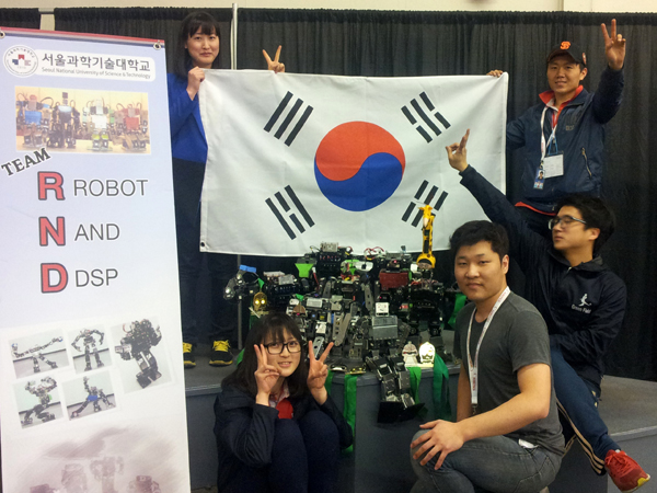 2013³â 4¿ù 19ÀϺÎÅÍ 21ÀϱîÁö ¹Ì±¹ ¼¾ÇÁ¶õ½Ã½ºÄÚ San Mateo Fairgrounds¿¡¼ °³ÃÖµÈ 2013 International Robogames´ëȸ¿¡¼ Çѱ¹´ëÇ¥·Î ÃâÀüÇÑ ¼¿ï°ú±â´ë °ø°ú´ëÇÐ ¿ÀȰæ(±â°è½Ã½ºÅÛ°øÇаú 3Çгâ), ÀÌ¿ìÀç(±â°è½Ã½ºÅÛ°øÇаú 3Çгâ), À̼®ÈÆ(±â°è½Ã½ºÅÛ°øÇаú 4Çгâ), ÇѰ¡¿µ(±â°è½Ã½ºÅÛ°øÇаú 3Çгâ) Çлý(R&D µ¿¾Æ¸® Áöµµ±³¼ö ±è¿µ¼®)ÀÌ ±Ý4, Àº5, µ¿1°³¸¦ ÃëµæÇÏ¿© 16°³±¹ÀÌ ÃâÀüÇÑ ÈÞ¸Ó³ëÀÌµå ·Îº¿ ºÎ¹®¿¡¼ 2³â ¿¬¼Ó Á¾ÇÕ¿ì½ÂÀ» Â÷ÁöÇÏ¿´´Ù.