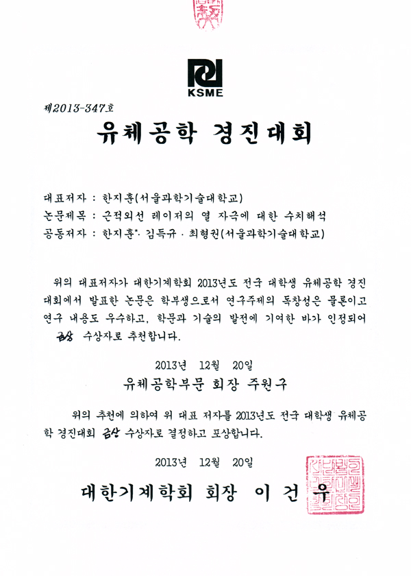 ±â°è.ÀÚµ¿Â÷°øÇаú(±â°è°øÇÐ ÇÁ·Î±×·¥) 4Çг⿡ ÀçÇÐ ÁßÀÎ ÇÑÁöÈÆ, ±èµæ±Ô Çлý(Áöµµ±³¼ö: ÃÖÇü±Ç)Àº Áö³ 12¿ù20ÀÏ¿¡ ´ëÇѱâ°èÇÐȸ ÁÖÃÖ·Î ¿¸° Á¦5ȸ Àü±¹´ëÇлý À¯Ã¼°øÇÐ °æÁø´ëȸ¿¡¼ ÃÑ 24 °³ÀÇ ÆÀ Áß¿¡¼ 2À§ÀÎ ±Ý»óÀ» Â÷ÁöÇß´Ù. ¹ßÇ¥ ³í¹®Àº ±ÙÀû¿Ü¼± ·¹ÀÌÀúÀÇ ¿ Àڱؿ¡ ´ëÇÑ ¼öÄ¡ÇØ¼®¿¡ ´ëÇÑ ³»¿ëÀ» ½Æ°í ÀÖ´Ù.