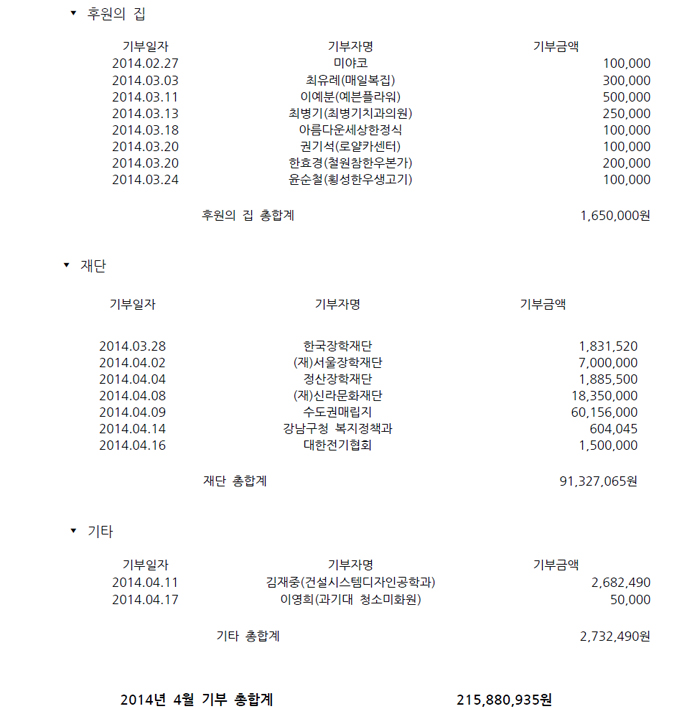 ¹ßÀü±â±Ý Ã⿬¸í´Ü (2014³â 4¿ù)