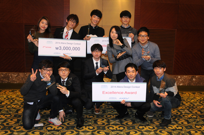 Áö³ 12¿ù 22ÀÏ, ¼¿ï ·Ôµ¥ È£ÅÚ ¿ùµå¿¡¼ ¿¸° 2014 Altera Design Contest ½Ã»ó½Ä¿¡¼ ¿ì¸®´ëÇÐ ÀüÀÚIT¹Ìµð¾î°øÇаú(Áöµµ±³¼ö À̽ÂÀº) ALEPÆÀ(±è»óµ·, °íÀº´©¸®, Á¤Àç¾Æ)ÀÌ 2µî»ó, 3DRÆÀ(ÀÌ»ó¹¬, ½ÅÁ¤¿ì, ±Ç¿À¼º, À̰ÇÇÏ)°ú ÁÁ¾Æº¸¿©ÆÀ(À̼º¸ð, °í±â¿, ÀåÁöÈÆ, Á¤±â·æ)ÆÀÀÌ °¢°¢ ¿ì¼ö»óÀ» ¼ö»óÇß´Ù.