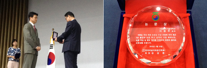 Áö³ 4¿ù 23ÀÏ(¸ñ) ¿ì¸®´ëÇÐ °Ç¼³½Ã½ºÅÛ°øÇаú¿¡¼´Â ÀÌ¿ëÁÖ ±³¼ö°¡ Çѱ¹ÅͳÎÁöÇϰø°£ÇÐȸ(ÇÐȸÀå ±è»óȯ)·ÎºÎÅÍ ÅͳΠ¹× ÁöÇϰø°£ºÐ¾ß ¿¬±¸¹ßÀü¿¡ ±â¿©ÇÑ °ø·Î·Î ³í¹®»óÀ» ¹Þ¾Ò´Ù°í ¹àÇû´Ù. ÀÌ¿ëÁÖ ±³¼ö´Â ÃÖ±Ù 2³â°£ ³í¹® Åõ°í ½ÇÀûÀÌ °¡Àå ¶Ù¾î³ª°í ³í¹® ÀÛ¼º ¹× ¹ßÇ¥ ¿ÀǸ¦ ÀÎÁ¤¹Þ¾Æ º» »óÀ» ¼ö»óÇÏ¿´´Ù.